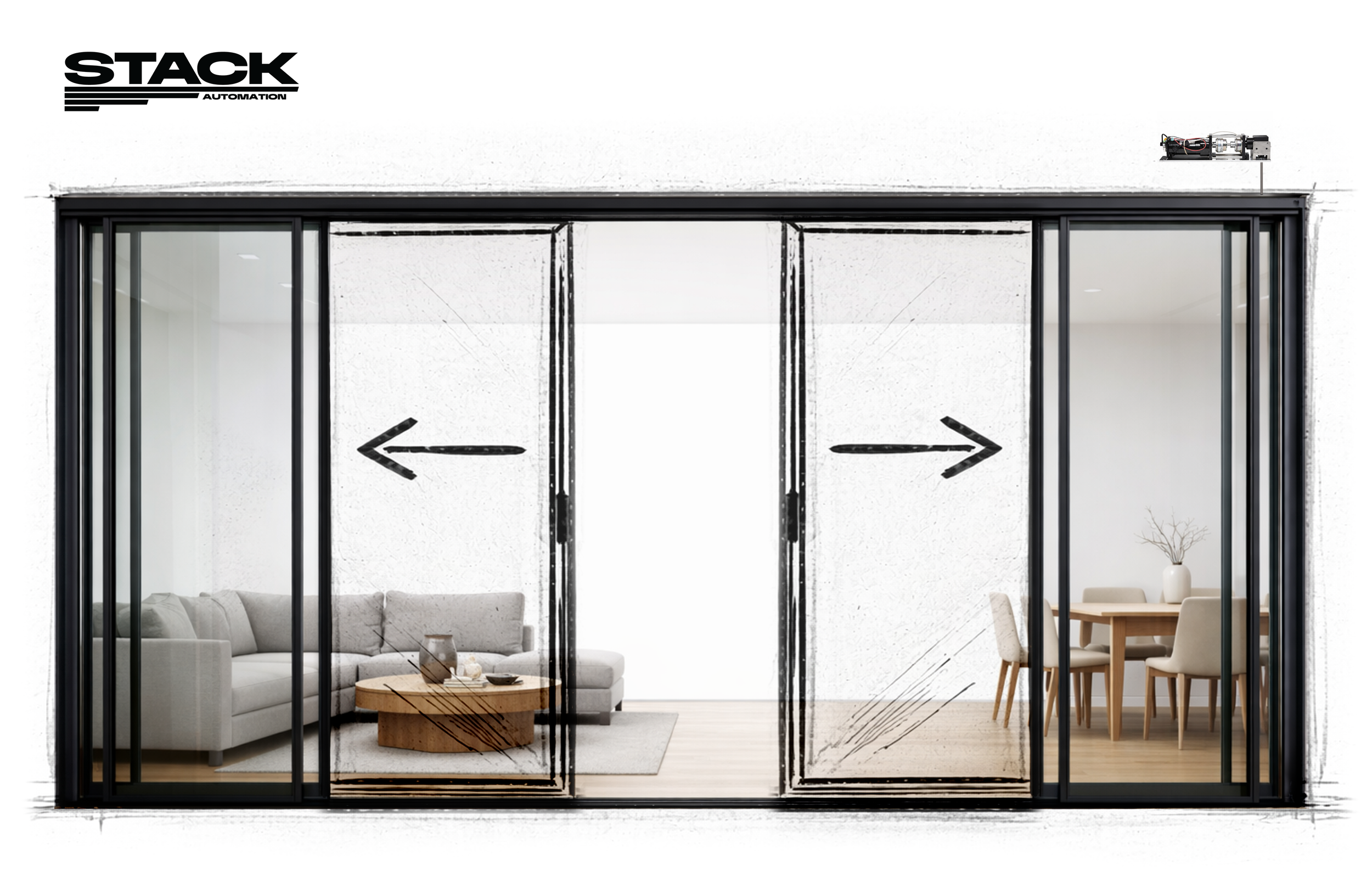 Stack Automation designs and integrates automated sliding door systems for large-format residential and commercial projects across Canada. Our automation solutions are engineered for heavy, multi-panel aluminum sliding doors where smooth motion, reliability, and precise architectural integration are critical. Nearly any aluminum sliding door system, allowing automation to be integrated without changing the door design